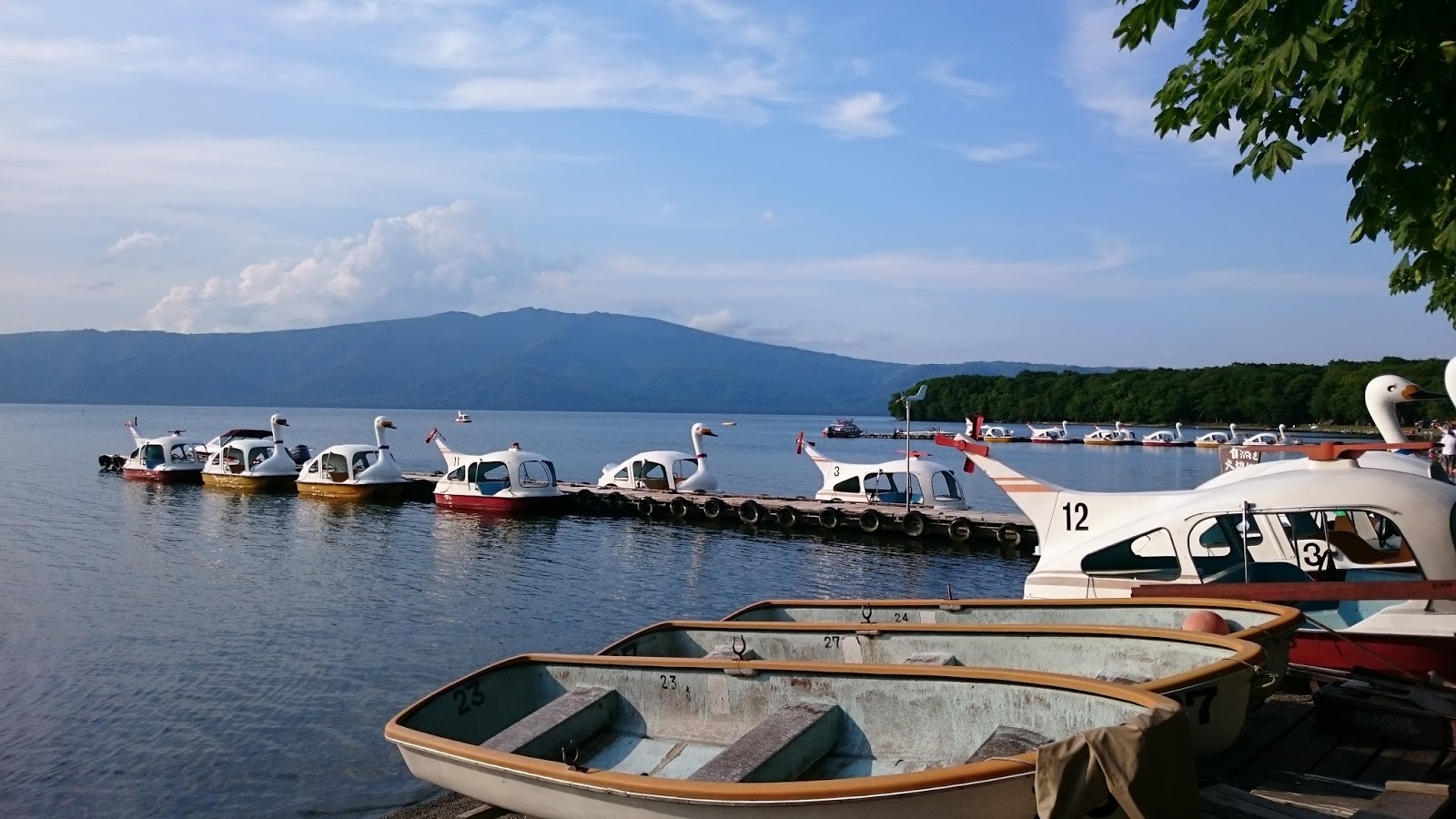 The swan boats were still in use even at the end of the season of tourism. So many real living swans visit this area in winter.