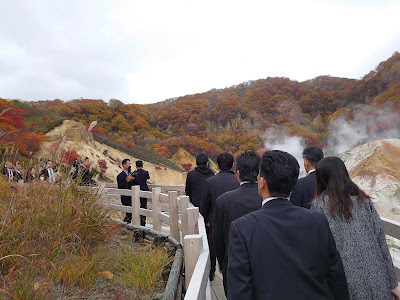 National Vice President of China Mr. Wang was found by many Chinese tourists in Jigokudani which means "Hell Valley" in Japanese. They waved their hands to Mr. Wang and were responded. I went to the next point to take photos and Security Polices appeared later.