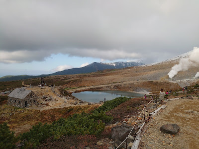 I visited Mt. Asahidake for the second time after the pandemic of covid-19. It was in October. A little bit snow was left on the hillside of the mountain. Very few tourists could be seen on the trail.