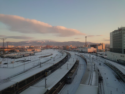At the break of dawn, the first train was ready to leave Hakodate Station . My wife loves to see the departure of the first train. I had to wake her up early in the morning for that on that day.